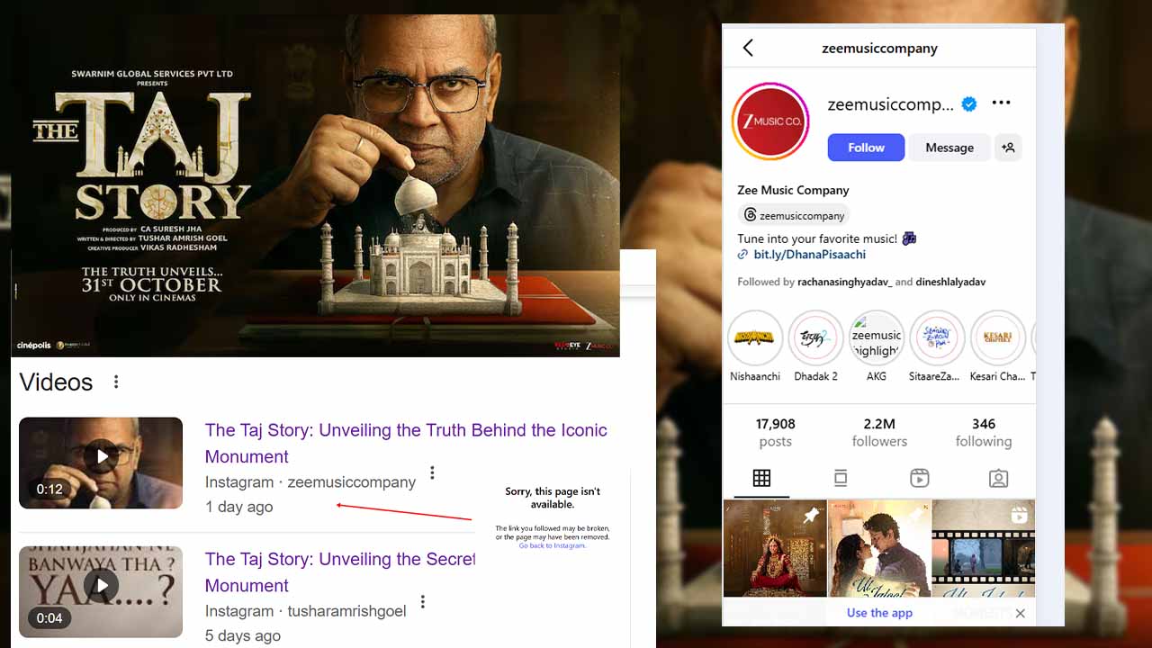 म्यूज़िक इंडस्ट्री की दिग्गज कंपनी Zee Music ने हाल ही में अपने इंस्टाग्राम अकाउंट पर “The Taj Story: Unveiling the Truth Behind the Iconic Monument” शीर्षक से एक रील पोस्ट की थी।